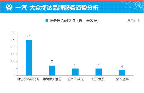 从服务投诉问题点来看,“销售承诺不兑现”成为车主对于一汽-大众捷达品牌抱怨相对最多的服务问题。通过进一步分析可知,该投诉问题主要来自捷达VS5。