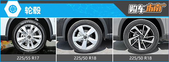 根据现有资料来看,新车全系提供3款轮毂样式,包含了单条辐和双条辐款式。规格方面,入门车型标配225/55 R17规格轮胎,其余两款车型则标配225/50 R18规格轮胎。
