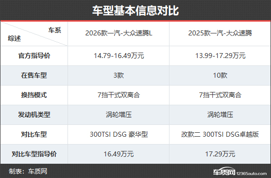 2026款速腾L此次共推出3款车型。相比之下,2025款速腾因包含多次小改款而拥有多达10款在售车型,因此新款在车型选择丰富度上稍显精简。售价区间有所调整,2026款速腾L的起售价较老款有所上调,但顶配车型价格则更加亲民。