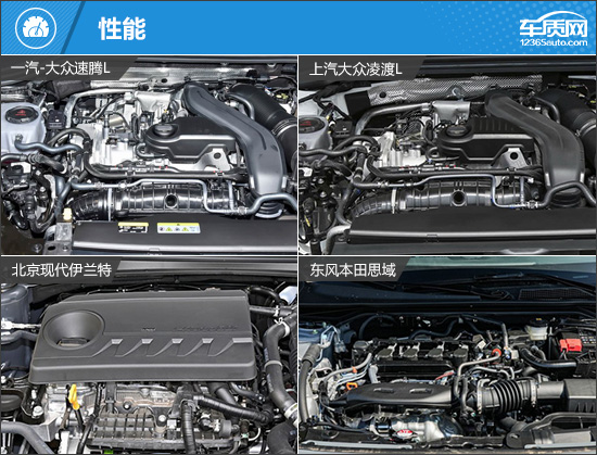 车身尺寸方面,从数据上来看,大众速腾L在车身长度和高度两方面占优,大众凌渡L的车身宽度要好于另外三款车型,本田思域则是轴距更有优势。虽然四款车型在车身尺寸方面有所差异,但在车内空间表现方面,都基本可以让目标客户满意,毕竟在几年前,2700mm以上的轴距已经是中型车水平。轮毂方面,本田思域和现代伊兰特都配备了18英寸轮毂,视觉效果更大气,大众速腾L也可以通过选装来获得这一配置,大众凌渡L则不提供这一配置。