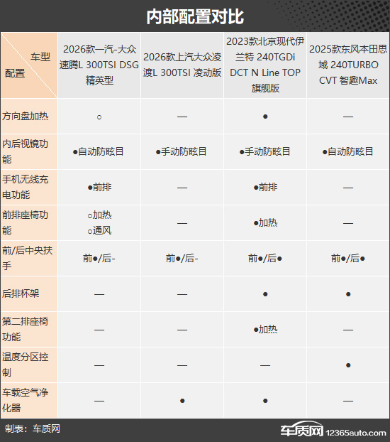 内部配置方面,现代伊兰特延续了韩系车型一贯的高配置优势,独享第二排座椅加热功能,并标配方向盘加热和前排座椅加热,可以提供更好的用车舒适性。相比之下,大众凌渡L在这一环节表现不佳,缺失多项实用性配置。