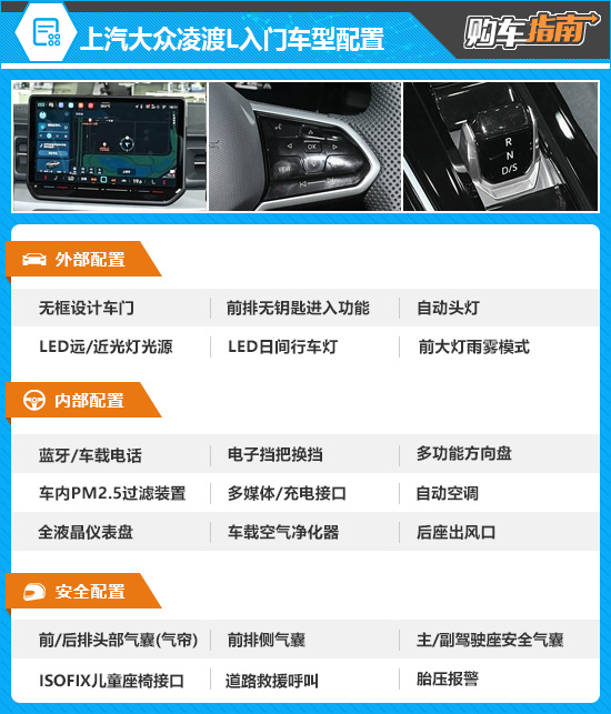 虽然是入门车型,但300TSI 凌感版的配置水平并不低,如自动头灯、LED远/近光灯光源、自动空调、后座出风口等均有配备,而且被动安全配置也较为全面。之所以不做重点推荐,主要原因是其在主动安全配置和驾驶功能方面存在一定缺失。