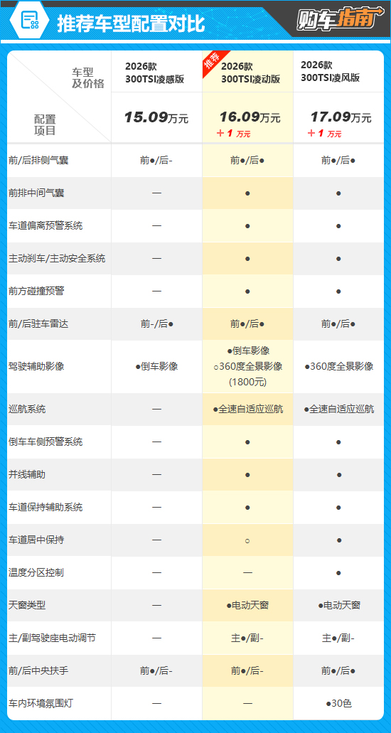 综合来看,如果您正在关注2026款上汽大众凌渡L,那么300TSI 凌动版值得您优先考虑。