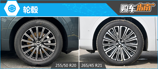 轮毂方面,银河M9全系标配20英寸多辐双色轮毂,视觉效果不错,与之匹配的轮胎规格为255/50 R20;顶配车型还可选装21英寸轮毂,能够进一步提升侧面的气场,与之匹配的轮胎规格为265/45 R21。