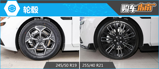 轮毂方面,领克10 EM-P的顶配车型配备21英寸双色多辐式铝合金轮毂,视觉效果运动时尚,匹配规格为255/40 R21的轮胎。其余车型则标配19英寸轮毂,匹配规格为245/50 R19的轮胎,其中两款中配Ultra版本可选装21英寸轮毂。