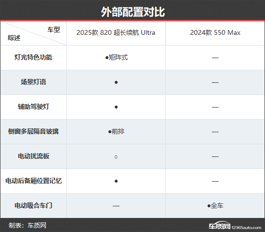 除了外观设计有较大的变化,新款车型的外部配置也有着不小的升级,增加了矩阵式灯光特色功能和场景灯语,点亮后极具科技感,当下流行的辅助驾驶灯也没有缺席。此外,新款车型还增加了前排侧窗多层隔音玻璃以及电动后备厢位置记忆,进一步提升静谧性和用车便利性。不过,新款车型取消了全车电动吸合车门,略有遗憾。