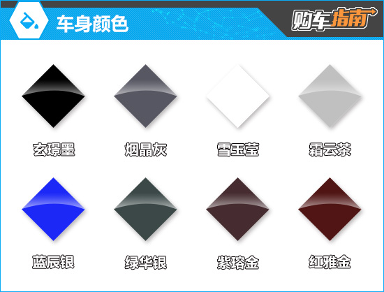车身颜色方面,新车共提供8款配色,霜云茶、红雅金、蓝辰银、绿华银和紫瑢金为5款新增颜色。其中,红雅金、蓝辰银、绿华银需加价1万进行选装,而紫瑢金则需加价3万,虽然价格昂贵,但双色车身确实更显尊贵,适合预算充足的用户选择。