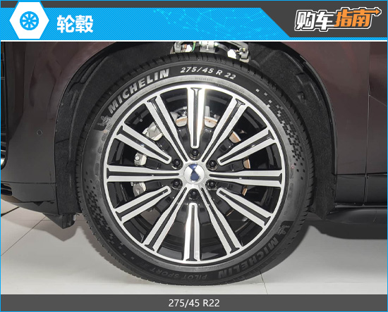 由于现阶段低配车型可享受免费轮毂升级,2026款腾势N9全系均配备22英寸多辐星曜轮毂。其造型厚重而富有张力,强化了车辆的整体气场,与大型SUV的定位非常契合。与之匹配的轮胎规格为275/45 R22。