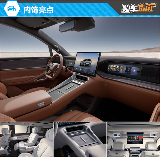 内饰方面,2026款腾势N9新增“金山棕”配色,氛围复古而庄重。仪表台搭载13.2英寸2.5K液晶仪表、17.3英寸中控屏、13.2英寸副驾屏,并配备50英寸AR-HUD抬头显示。车机硬件升级为4nm芯片,软件则使用最新UI界面,操作更为人性化。座椅方面,其采用2+2+2六座布局,中高配车型配备副驾零重力座椅,二排座椅还可横向移动。此外,全系标配了后排小桌板、双手机无线充电以及车载冰箱等。顶配车型第三排座椅除了支持电动调节外,还带有加热功能,舒适性表现出色。