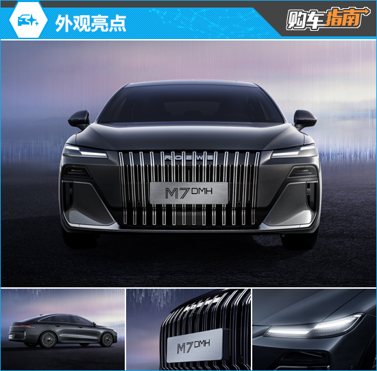 荣威M7 DMH由前劳斯莱斯设计师约瑟夫·卡班操刀,融合直瀑式前格栅、光轨日行灯、荣耀迎宾光毯等诸多豪华元素,被称为“国产小劳斯莱斯”。具体来看,前脸造型相对厚重,双线镀铬饰条填充的前格栅彰显出庄重典雅的氛围。“ROEWE”字母支持点亮,搭配分体式大灯组和矢量光轨日行灯,夜间辨识度极高。