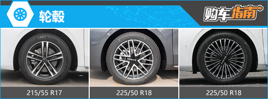 荣威M7 DMH提供两种尺寸三种不同设计风格的轮毂,160km舒享版配备17英寸双五辐精车轮毂,匹配规格为215/55 R17的轮胎;160km悦享版采用18英寸五角星辉轮毂,匹配规格为225/50 R18的轮胎;160km臻享版配备18英寸多辐领辉精工轮毂,同样匹配规格为225/50 R18的轮胎。