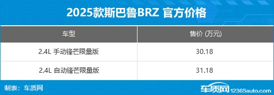 10月 15日,新款斯巴鲁BRZ STI Sport锋芒限量版上市,新车共推出2款车型,售价分别为30.18万元和31.18万元。据悉,新车预计在10月末开启交付。此外,针对在2025年10月15日-12月31日内成交的车主,赠送一套STI Plus套件。