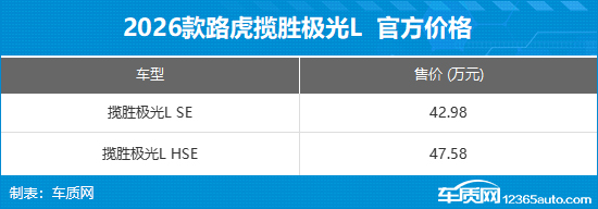 10月15日,2026款路虎揽胜极光L正式上市,推出SE与HSE两款配置车型,售价42.98-47.58万元。作为年度改款车型,新车在安全防护与智能科技层面实现关键升级,同时延续家族经典设计语言。