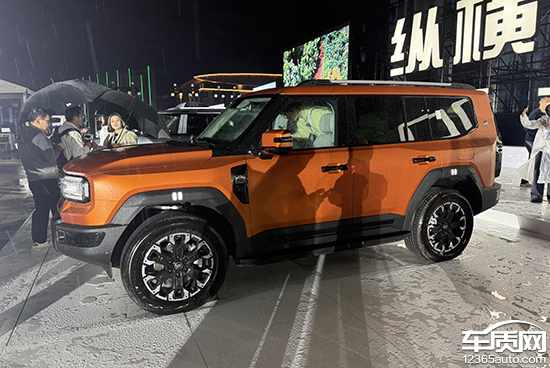 车身侧面依旧保持方正、硬朗的轮廓,线条简洁利落,搭配粗犷的前后保险杠与宽厚的轮眉,进一步凸显硬派越野气质。车尾同样以方正设计为主,外挂式裸露备胎极具野性,展现出强烈的越野属性。
