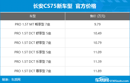 10月17日,新款长安CS75PRO正式上市,新车推出6款车型,售价区间9.79-11.89万元,叠加现金补贴及无门槛置换补贴后7.59-9.69万元。新车提供5座和7座布局,动力系统搭载1.5T发动机。