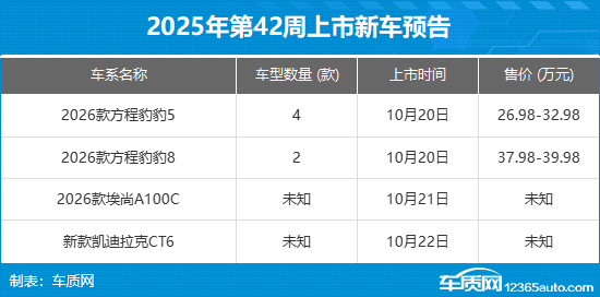 2025年第42周(10月20日-10月26日)上市新车预告
