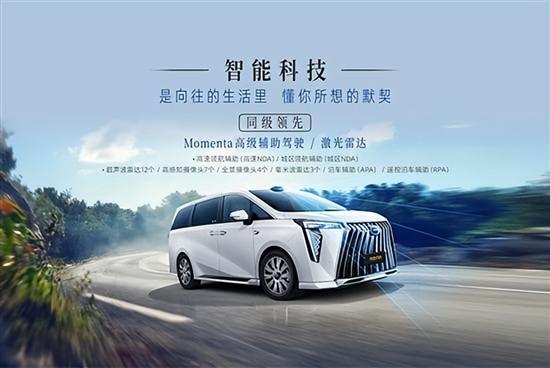 广汽传祺向往M8宗师版搭载Momenta高级辅助驾驶系统,配备包括12枚超声波雷达、7枚高感知摄像头、4枚全景摄像头及3枚毫米波雷达在内的多重感知硬件,支持泊车辅助、遥控泊车、高速NOA及城区领航辅助等多项高阶智驾功能。