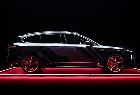 侧面依然还是标准的旅行车结构,搭配全新的20英寸五辐式风速轮毂,内置“气辉橙”制动卡钳,套装价值13000元。此外,蔚来ET5T暗影套装限定版还标配与冠军纪念版同款的底盘装备,例如前后防倾杆升级,抗扭刚度提升6%,并且还拥有专属的运动化底盘调校以及EP Mode模式。