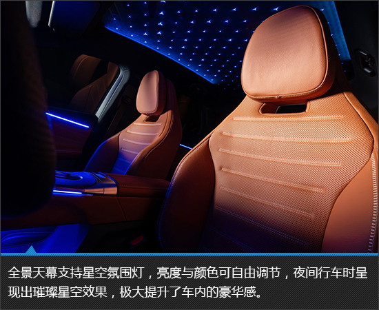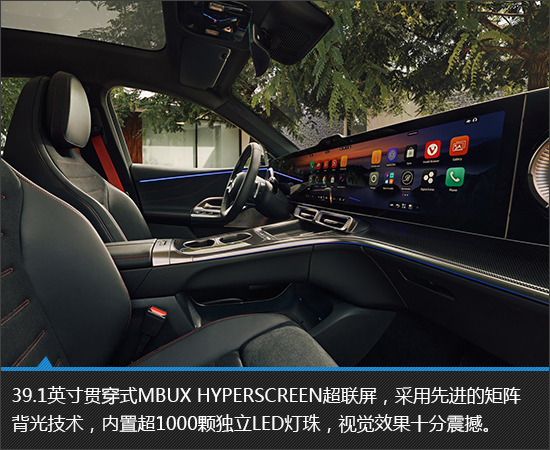 内饰设计延续了奔驰全新家族式风格,贯穿式屏幕尺寸达到了39.1英寸,是目前最大的MBUX HYPERSCREEN超联屏,视觉效果非常震撼。同时,在大量氛围灯光源的加持下,车内氛围烘托得十分到位,并且可以与诸多功能联动,科技感与高级感兼备。