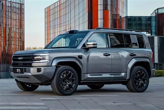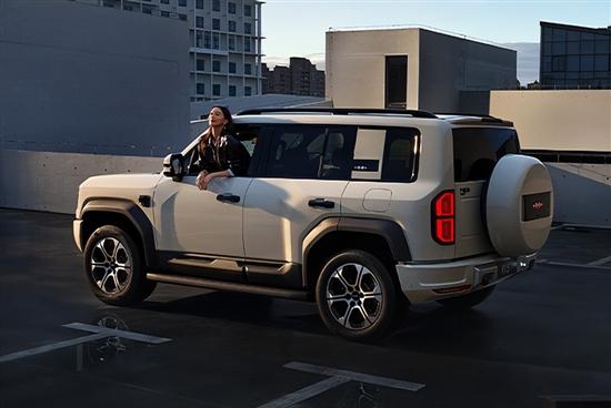 车身侧面依旧线条分明,轮廓饱满,车门处的硬朗筋线营造出极强的肌肉感。车尾则延续经典的“方盒子”造型,配备外挂式备胎与侧开式尾门,不仅强化了越野属性,也保留了传统硬派SUV的标志性元素。
