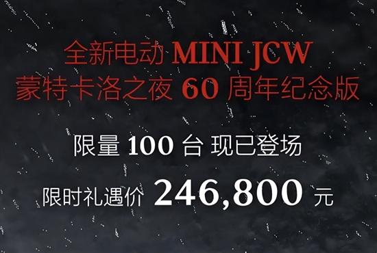 10月20日,全新电动MINI JCW蒙特卡洛之夜60周年纪念版车型正式上市,新车仅推出一款车型,官方指导价为31.48万元。同时,官方还推出了限时礼遇价,价格为24.68万元,并限量100台。