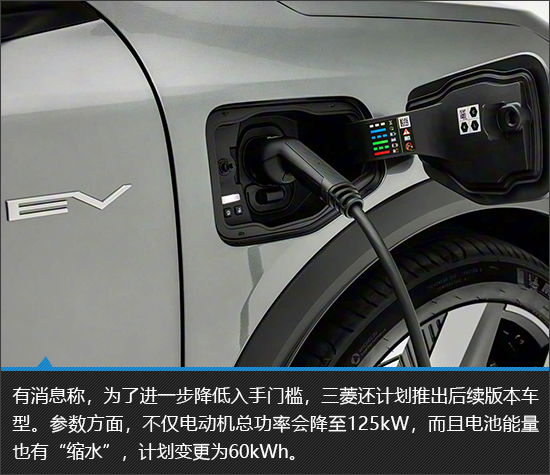 作为一款纯电车型,续航里程肯定是用户最为关注的一个话题。据悉,三菱Eclipse Cross EV未来将推出两款动力配置,从而形成高低搭配,满足不同消费者的需求。对比来看,无论是电动机参数还是续航里程,首发版车型的表现都要更好一些。