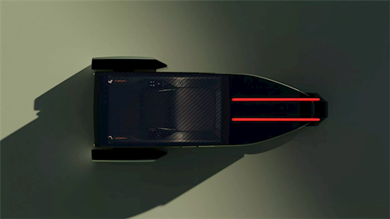 前脸由发光灯带勾勒出纺锤形轮廓,贯穿式尾灯向上延伸至车顶,形成“光翼”造型,夜间点亮相当独特且具有辨识度,车身采用可变色车漆,可根据光线和驾驶模式切换哑光银与深空灰两种色调。