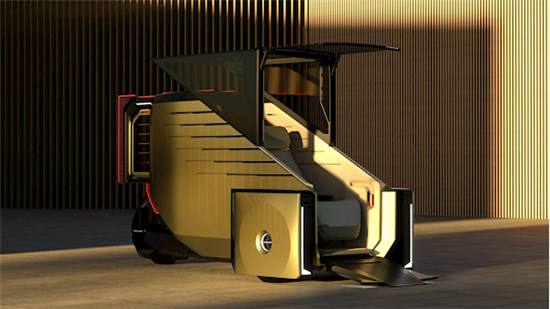 模块化能源系统采用可更换电池设计,单次充电续航150公里,电池组可通过共享网络快速更换,还配备无线充电板,支持动态充电(行驶中充电)。