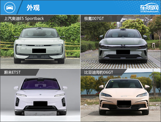 此次推荐的四款车型,上汽奥迪E5 Sportback是上汽AUDI品牌旗下首款车型,被给予厚望;极氪007GT和蔚来ET5T则是老对手,热度很高;比亚迪海豹06GT主打性价比,但不俗的整体实力也能跟另外三款车型“掰掰手腕”。四款车型均选择了顶配版本,能够更直观地看出哪家产品实力更强。