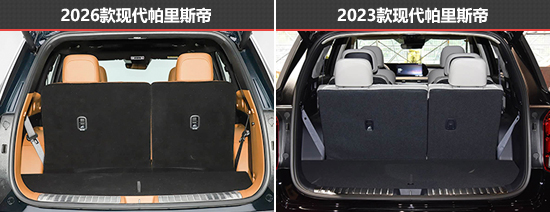 后备厢空间方面,目测新老款车型的差异不是很大,在使用第三排座椅的情况下,储物空间都比较小,但在第三排座椅放倒之后,都拥有比较可观的容积。同时,因为新款车型的第三排座椅可以进行前后调节,让其在空间灵活性方面要更胜一筹。