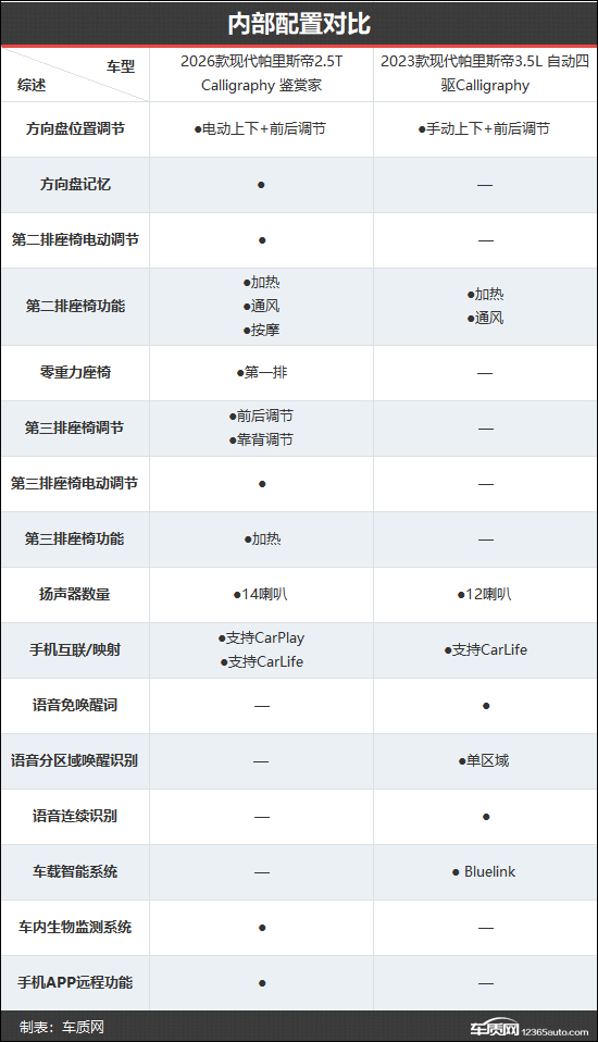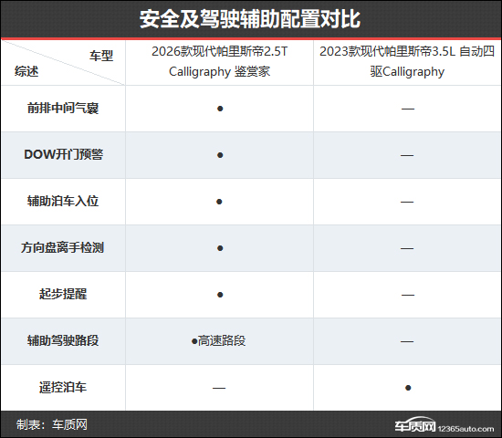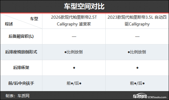 2026款现代帕里斯帝共推出3款车型,车型数量与2023款相比进行了精简。本次对比选择了新老款车型的Calligraphy版本,以便能够更加直观地看出两者在配置层面的具体差异。