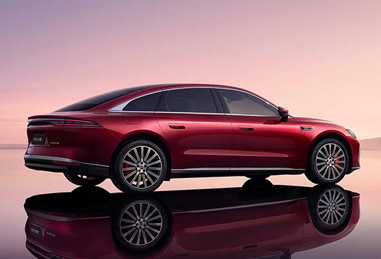 侧面线条动感流畅,官方公布的整车风阻系数为0.23Cd。车尾配备贯穿式尾灯组,后包围处加入镀铬装饰点缀,与前脸遥相呼应。尺寸方面,新车长宽高分别为5018mm*1965mm*1500mm,轴距3000mm。