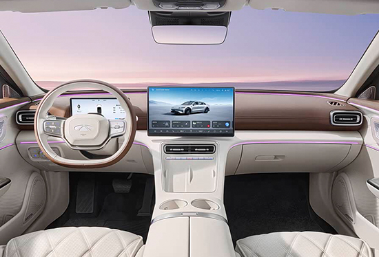 内饰设计简约优雅,15.6英寸悬浮式中控屏内置高通骁龙8255芯片,灵犀智舱2.0车机系统功能丰富,支持CarPlay、HUAWEI HiCar手机映射功能。值得一提的是,四座版车型提供了更加典雅的棕/米白双拼配色,后排乘客享有座椅控制面板,支持通风、加热、按摩功能。座椅中间位置内嵌有冷暖箱,有效提升了车辆的行政氛围与豪华感。