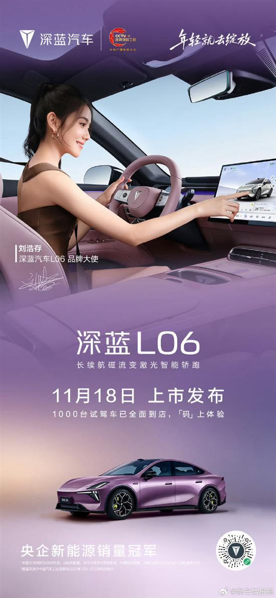 我们从深蓝汽车 官方获悉,旗下全新中型轿车-深蓝L06定档11月18日正式上市。