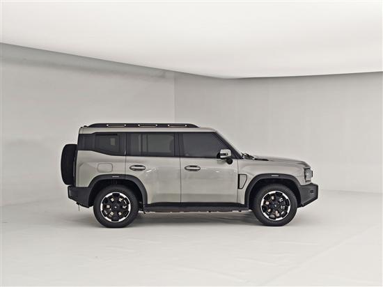 侧面保留了敦实厚重、越野风格十足的设计,前后翼子板位置采用了非常突出且很有肌肉感的设计,粗壮的黑色轮眉向外凸起,下方的轮拱还连着中部脚踏板,整体很有野性。此外。