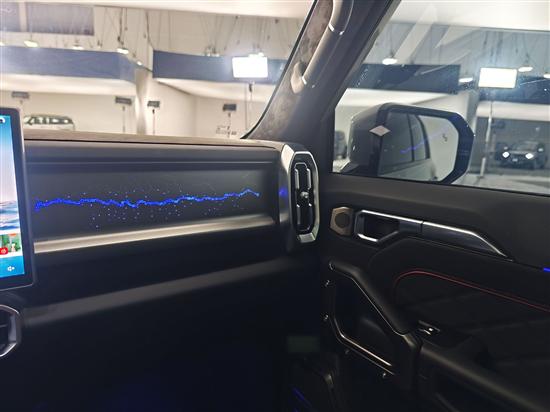 副驾前的装饰板依旧可以点亮,标志性的318路线图能提供很好的情绪价值,而且氛围灯可以随车机音乐律动,有效提升了车内整体氛围。
