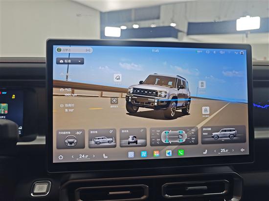 车机界面里的“越野表盘”的功能也进行了升级,UI界面更精美,而且显示的功能也更多。例如海拔、气压、指南针、驾驶模式、方向盘转角、俯仰角、侧倾角、胎压等等都能显示,在越野情况下能够非常直观了解车辆状态,可玩性和实用性都很高。