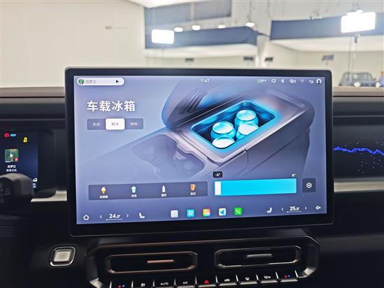 同时,新车中央扶手位置还新增了冷暖箱,容积为6.4L,可实现-6℃-50℃的制冷和保温功能。而且在车载冰箱界面下,还预设了冰激凌、冷饮、温奶以及热饮集中常见的温度,操作会更加便捷,不得不说小细节的考虑还是相当到位的。