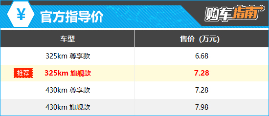 动力方面,新车全系搭载前置单电机,电动机总功率75kW。配备不同容量的磷酸铁锂电池组,CLTC工况下纯电续航里程分别为325km和430km。