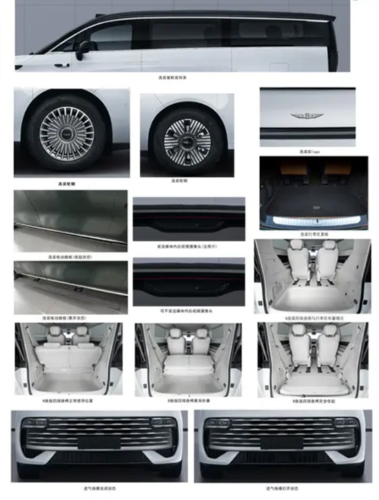 外观方面,相比吉利银河翼真L380,新增新增尺寸更大的前格栅,并具备主动式进气格栅功能。此外,新车还保留了分体式前灯组,车顶带有激光雷达,预计将支持更高阶的辅助驾驶功能。
