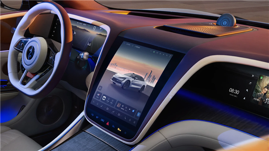 全新星河蓝车色是此次亮相的核心亮点之一,色调灵感源自夜空星河,并非单一的蓝色系呈现。在自然光下,车身呈现出深邃通透的基底色,随着光线角度变化,会折射出细密的银蓝光泽,如同星河中散落的星点,既保留了豪华车型应有的沉稳质感,又通过细腻的色彩层次增添了时尚感与科技感。这种配色不仅能凸显车身修长流畅的线条,还能与时空之门设计语言相呼应,让C形大灯组、贯穿式尾灯的光影效果更具视觉张力,形成极高的辨识度。
