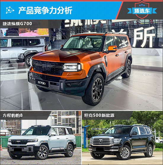 捷途纵横G700与方程豹豹8、坦克500新能源均定位为兼顾豪华舒适与硬派越野能力的新能源中大型SUV。它们在价格上接近,核心目标用户高度重合,都瞄准了那些既追求城市豪华体验又渴望户外探索能力的精英消费群体。接下来,我们将通过对比分析,看看捷途纵横G700能否在与这两款竞品车型的竞争中脱颖而出。