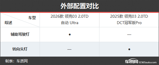 外部配置方面,新款领克03仅针对灯光系统进行了微调,增加了辅助驾驶灯,预示其搭载了高阶辅助驾驶功能。同时,老款车型上的转向头灯被取消,好在对日常使用影响不大。