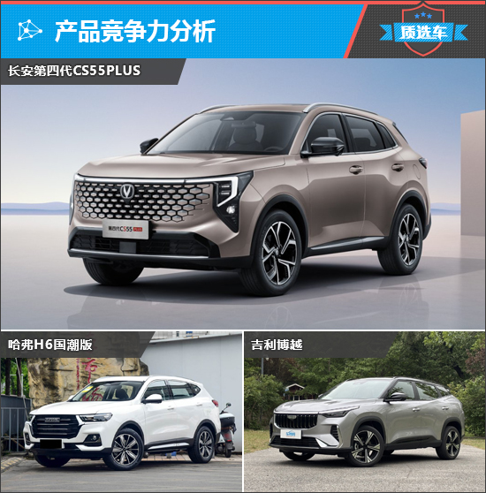国内燃油SUV市场近年来虽也有不少新产品加入,但热销车型仍以经典产品为主。根据第四代CS55PLUS的定价,其主要竞争对手锁定在哈弗H6国潮版和吉利博越两款老牌SUV车型。