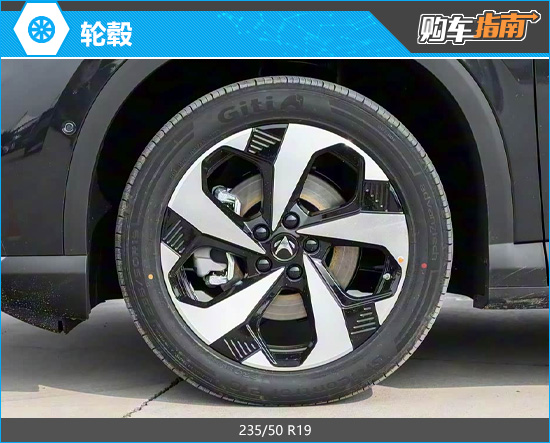 极狐全新阿尔法T5全系配备19英寸刀锋式轮毂,造型锐利动感,与车身凌厉的线条相得益彰,强化了整车的力量感。匹配的轮胎规格为235/50 R19。