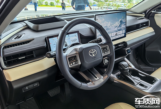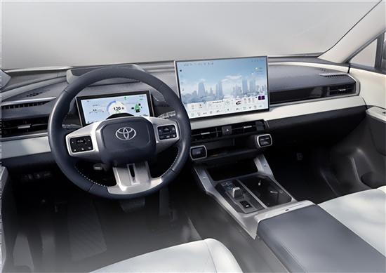 内饰部分,整个座舱都是由丰田中国团队自研打造,更加符合中国用户的使用习惯。15.6英寸悬浮式中控屏有着非常窄的边框,极具视觉冲击力,内置高通骁龙8155P芯片,功能十分丰富。语音控制系统集成了丰田首个语言大模型,支持四区域唤醒识别。此外,车机还支持CarPlay、HiCar、Carlink手机互联。