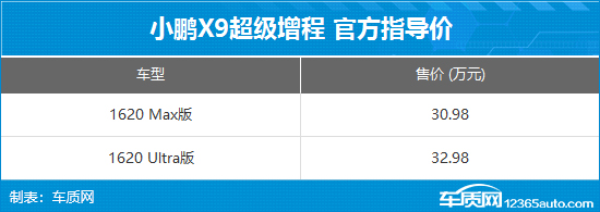 动力系统方面,小鹏X9超级增程搭载1.5T发动机+电机组成的增程系统,发动机最大功率110kW,电机总功率210kW,配备63.3kWh电池组+60L油箱,CLTC工况下纯电续航里程为452km,综合续航可达1602km。