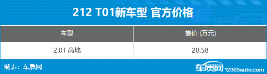 2025广州车展期间,212品牌旗下硬派SUV新品——T01高地版正式首发亮相并同步上市,官方指导价20.58万元。作为原厂合规的越野升级款车型,新车专为越野发烧友打造。