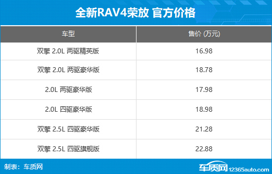 11月21日在广州车展上,一汽丰田带来了全新的RAV4荣放,共计推出6款车型,售价16.98-22.88万元。
