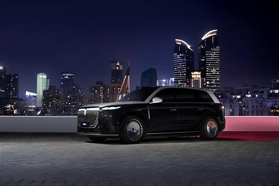 车侧采用双色车身搭配半隐藏式门把手,整体视觉比例较为舒展。圆盘式的轮毂气场十足,极大程度提升了豪华观感。车身尺寸上,其长宽高分别为5230mm*2025mm*1817mm,轴距3120mm,定位为旗舰大型SUV。